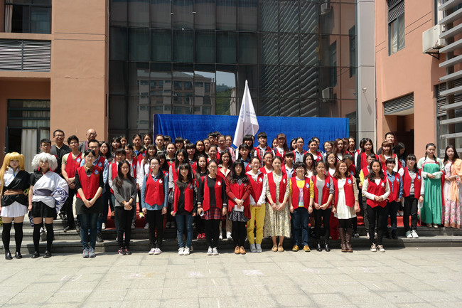 近日,校多语言服务联盟启动仪式暨中国国际动漫节志愿者出征仪式在小和山校区举行。党委副书记赵伐,校团委负责人、各学院负责志愿者工作的辅导员以及200多名多语言服务联盟志愿者参加了仪式。