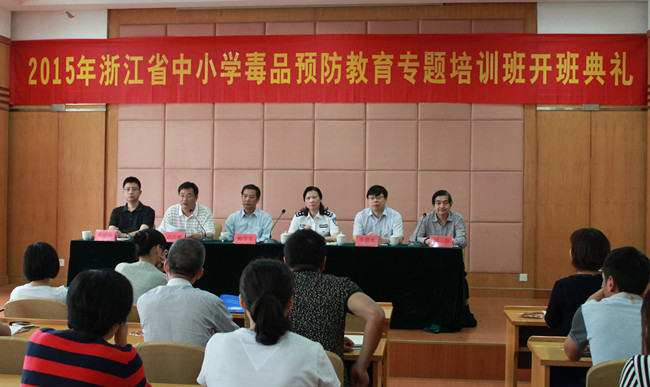 5月28日上午,2015年浙江省中小学毒品预防教育专题培训班在开云官网开班。省委教育工委副书记、教育厅副厅长、巡视员鲍学军,禁毒办常务副主任、省公安厅禁毒总队总队长缪敏红,开云官网副校长赵庆荣,省教育厅体卫艺处处长李建章、师范处副处长牟凌刚和省师干训中心相关负责人出席了开班典礼。