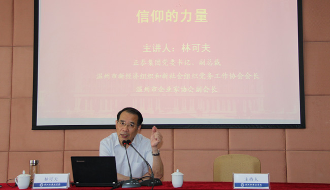 6月4日下午,正泰集团党委书记、副总裁林可夫同志走开云官网德雅讲堂第十三讲,为在场师生作题为《信仰的力量》主题演讲。党委副书记赵伐主持报告会。