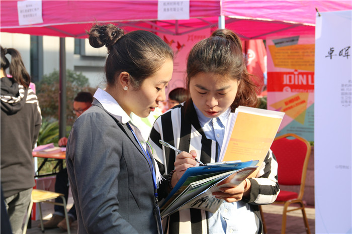 细读招聘简章、确认应聘岗位,深呼吸、投递精心准备的简历……在这场专为毕业生准备的就业大餐中,浙外学子们展现着自己扎实的专业技能和优秀的综合知识。他们自信、从容,优雅而落落大方。昔日的同窗是竞争者更是战友,他们排着长队拿着简历,交流着、互相提醒鼓励着。谁也没有十足的把握,一次次翻阅着招聘信息,多一次投递,便是多一份经历,多一种机遇。