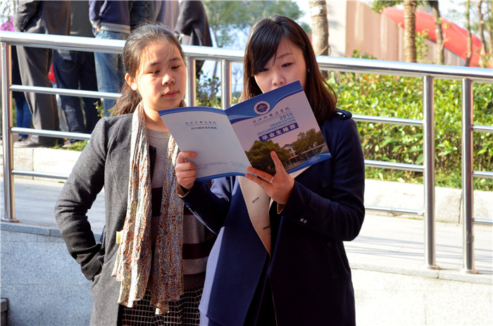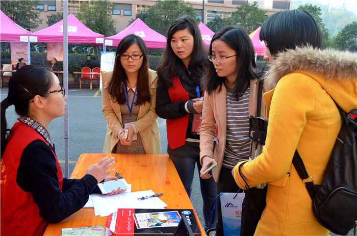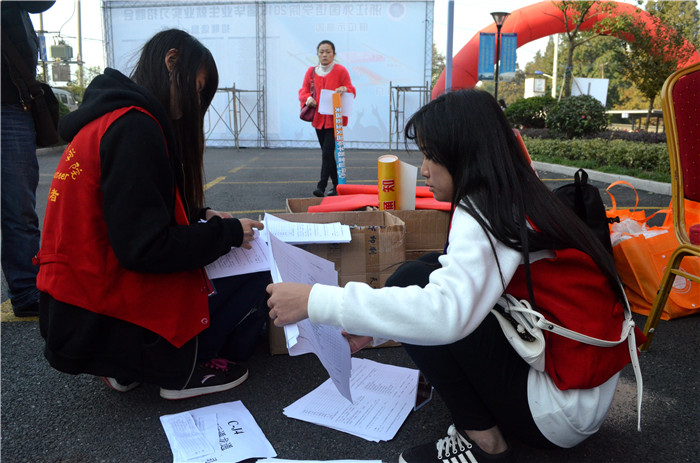 搭帐篷、搬桌椅、张贴招聘信息;宣传发动、预约单位、制作推荐册;设置咨询台、讲解应聘流程、现场求职指导……早在招聘会前期,学校便早早地筹备。校领导高度重视,学生处、各二级学院、保卫处、后勤服务中心精心组织,从用人单位的邀请到学生应聘的前期准备,从场地布置到招聘会现场的秩序维持,从志愿者的组织协调到后勤服务保障,学校各部门和学院齐心协力,有条不紊地为毕业生的求职应聘准备着。贴心周到的服务,是缓解应聘者紧张的有效良药;志愿者热心的笑容带给毕业生莫大的支持;老师们精心的指导更是浙外学子最好的鼓励和支持。