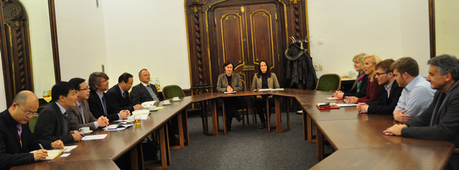 出访团访问了帕绍大学,与该校副校长乌苏拉·罗伊特纳教授和相关职能部门负责人举行了座谈。座谈会上,曹仁清回顾了开云官网与帕绍大学在2012年签署谅解备忘录后的合作情况,就德语专业建设、教师科研合作与交流、学生长短期交流、学分互认、双学位授予、“卓越师范生国际化培养项目”等方面进行了交流。