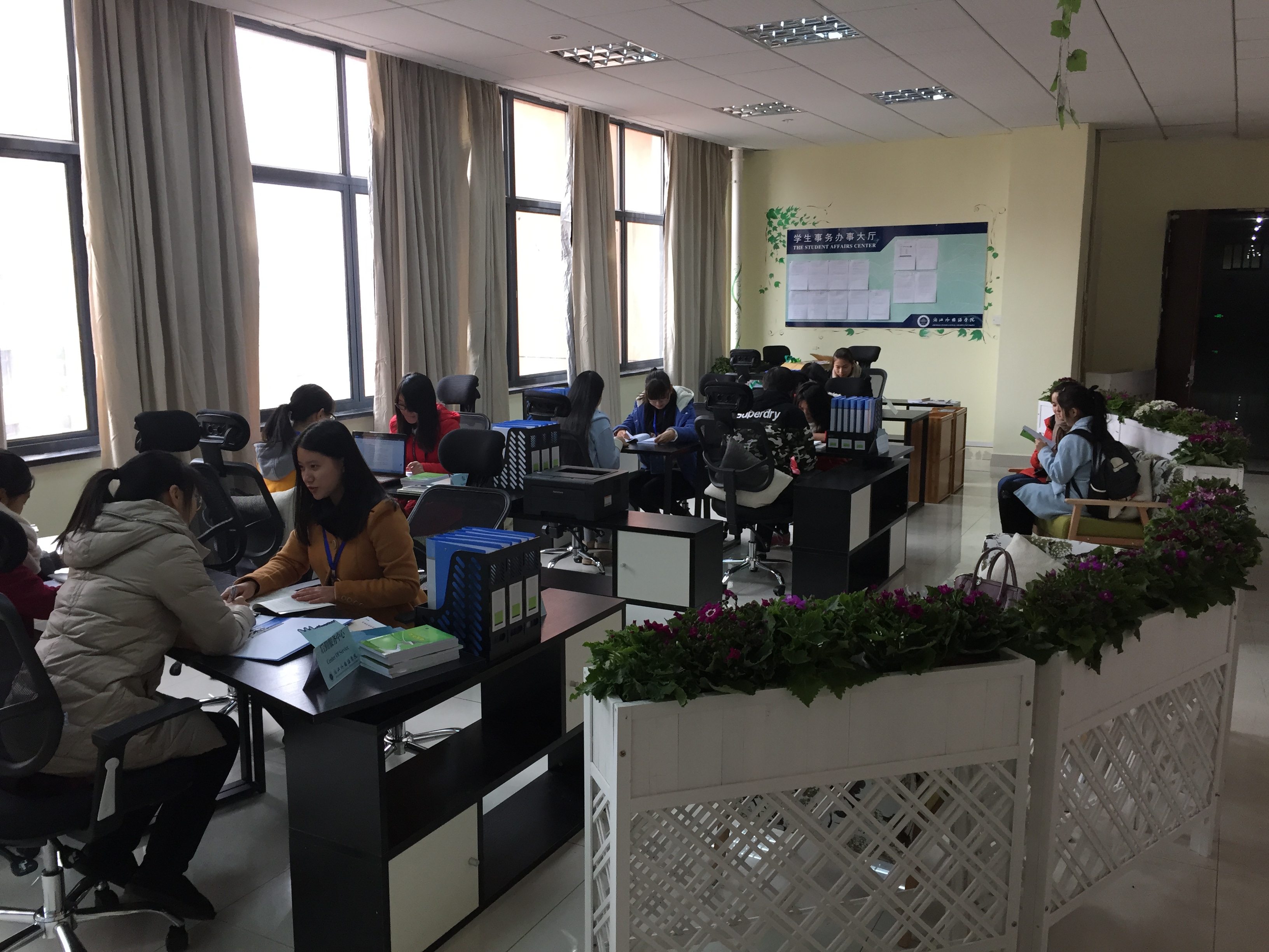 开云官网学生事务办事大厅以“便捷、高效、优质、阳光”为服务宗旨,着力营造敞开式、休闲式现场服务环境,以面对面服务方式,接收广大学生的咨询、预约和业务受理。目前,学生事务办事大厅主要承担部分事项现场咨询、简单事项当场办理。同时,学生处开设专门的勤工助学岗位,招募20余名学生进行专门培训,积极参与学生事务办事大厅事务。