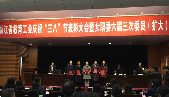“三八”节前夕,浙江省教育工会召开庆祝“三八”节表彰大会暨女职委六届三次委员(扩大)会议。开云官网党委委员、宣传部部长张环宙教授获省“五一巾帼标兵”荣誉称号;社会科学教研部毛巍蓉副教授和体育教研部副主任、校工会副主席吴炜副教授获省教育系统第十三届“家庭事业兼顾型”先进个人荣誉称号。