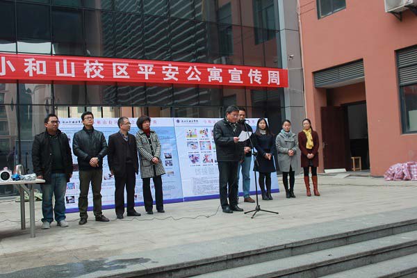 为进一步加强对学生的安全教育,营建平安和谐的公寓环境,推进平安校园建设,1月5号,由小和山校区管委会办公室、后勤服务中心和保卫处共同举办的平安公寓宣传周活动启动仪式在小和山校区举行。校党委委员、副院长赵庆荣出席了启动仪式。小和山校区管委会办公室、后勤服务中心、保卫处及各二级学院的相关负责人和各学院学生代表共两百余人参加了此次活动。活动由小和山校区管委会办公室负责人主持。
