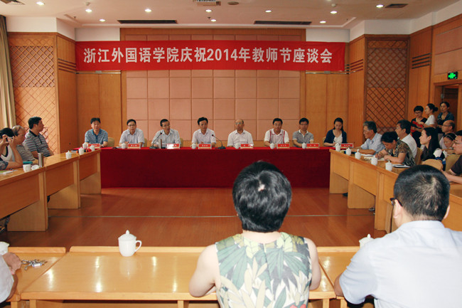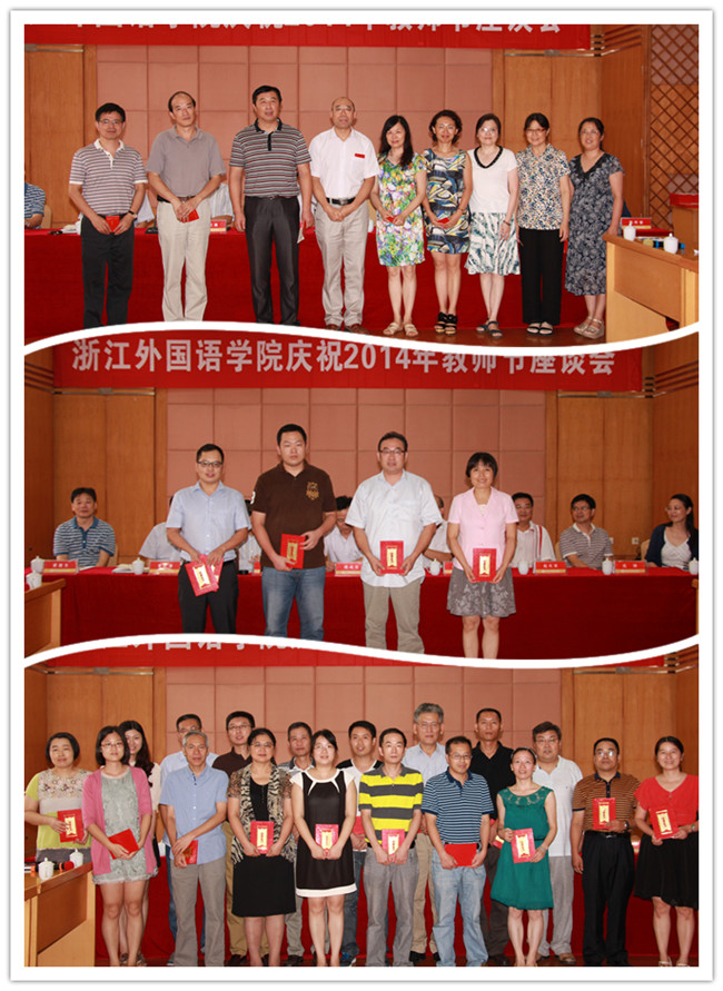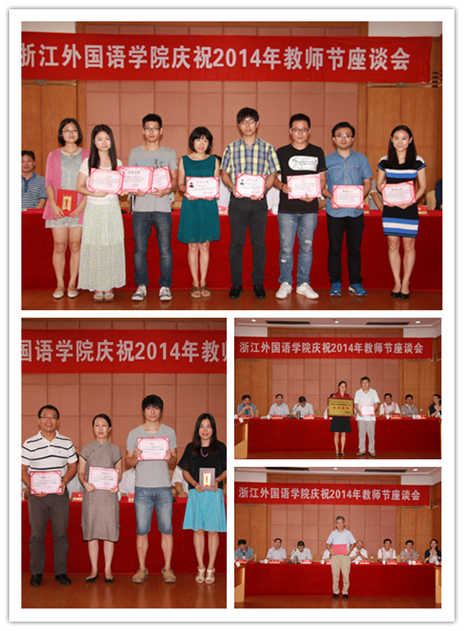 先进获奖代表和教师代表分别在座谈会上发言。“三育人”先进工作者代表李波介绍了自己教书、育人方面的经验。他说,作为教师对学生要爱如慈母,管如严父,亲如朋友,用心教导学生做人、做事;省部级科研成果奖获得者代表董红亚从如何做好科研服务地方经济社会发展的角度谈了自己的看法;从教30年的教师代表李宁结合从教30年的经历,谈了自己在体育教学和管理中的体会、感受;青年教师代表马素文用温情的语言表达了一年来浙外大家庭给予她的关爱、鼓励和帮助;新教师代表陈毓飞则表示,会倍加珍惜在浙外工作的机会,用三寸粉笔,挥洒知识的种子,用一颗丹心,报效教育事业。