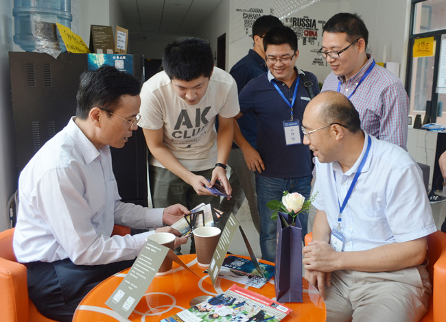 在欧亚语言文化学院展台前,姚成荣动情地说,欧亚语言文化学院以服务新生、朋辈互助为载体,加强基层服务型党组织建设,充分体现了党员的先进性和立德树人的目的。