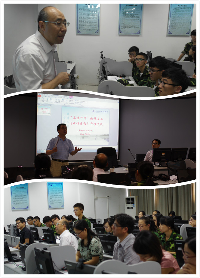 9月28日,学校首次通过“三位一体”招收的翻译专业口译班举行开班仪式。校党委副书记赵伐教授,教务处、英语语言文化学院负责人,专业教师、口译班班主任、辅导员出席了开班仪式。