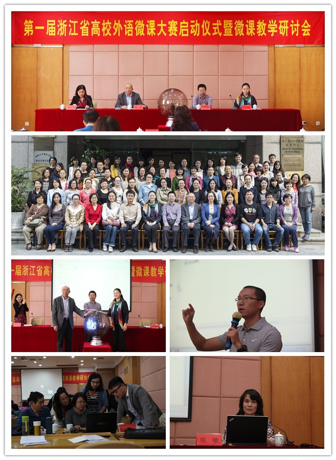 三位领导共同启动“第一届浙江省高校外语微课大赛启动球”后,启动仪式落下帷幕。