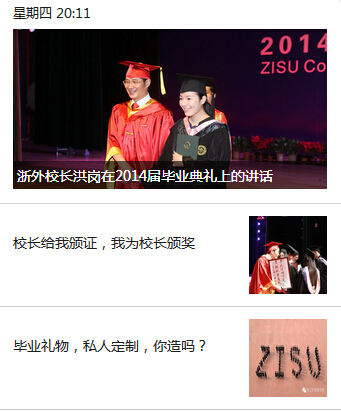 两个平台在试运行期间受到了全校上下的关注。如微信图文话题“浙外校长洪岗在2014届毕业典礼上的讲话”在短时间内阅读人数近1700次,分享转发人数达到100多次。