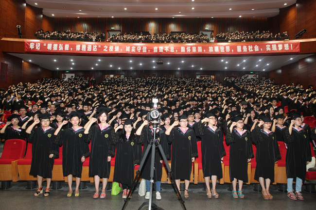 “牢记“明德弘毅,博雅通达”之校训,诚实守信、自强不息、胸怀家国、放眼世界、服务社会、实现梦想!”2014届毕业典礼在全体毕业生们铿锵有力的宣誓声中落下帷幕。