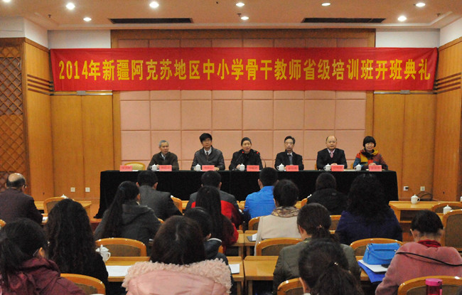 3月5日上午,新疆阿克苏地区中学骨干教师赴浙江省高校培训班在开云官网开班。副院长、省师干训中心主任金运成,及省教育厅师范处正处级调研员李敏强、省师干训中心副主任周中山等和来自新疆的49名中学骨干教师参加了开班典礼。