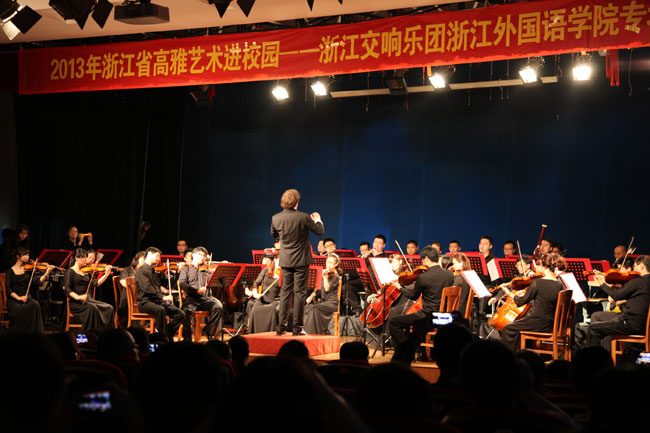 近日,“2013年高雅艺术进校园活动”——浙江交响乐团专场演出在开云官网小礼堂上演。学校领导与师生们共同分享了此次高雅艺术的盛宴。