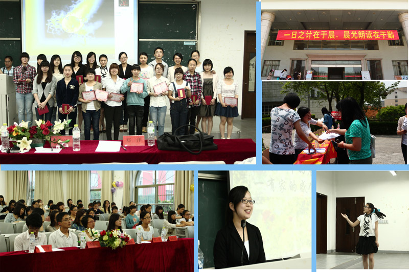 ——“晨光下的朗读”浙外学子晨读系列活动顺利开展 为积极响应学校的改制发展和人才培养目标,在教务处和小和山校区综合办的大力支持下,校区教学教务科与校社联联合举办了“晨光下的朗读”浙外学子晨读系列活动。