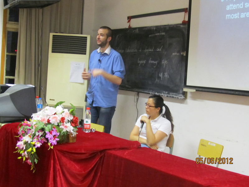 作为教育科学学院第一届教育文化节的一部分,5月6日晚6点30分,在行政楼508,教育科学学院的外教、来自英国的Tristan为全院学生做了题为"Higher education in English and language learn tips"的讲座。讲座上,Tristan着重介绍英国的教育政策、课程种类以及小学、中学、高等教育的特色,分析了英国教育与其他国家的不同,讲述了政策调整对英国教育的影响,同时表达了他个人对英国教育现状的担忧。整个讲座历时一个半小时。