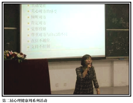 5月17日晚,由校学生处主办、科技学院心理健康教育工作站承办的第二届心理健康教育周系列活动之“如何成为人际沟通的高手”主题讲座在小和山校区举行。讲座由浙江科技学院心理咨询中心国家二级心理咨询师赛燕燕老师主讲。赛老师以生动有趣的案例向同学们讲述了人际沟通的基本要素、大学生平等相处的沟通方式。对在座同学提出的人际关系困惑,赛老师一一予以耐心解答。