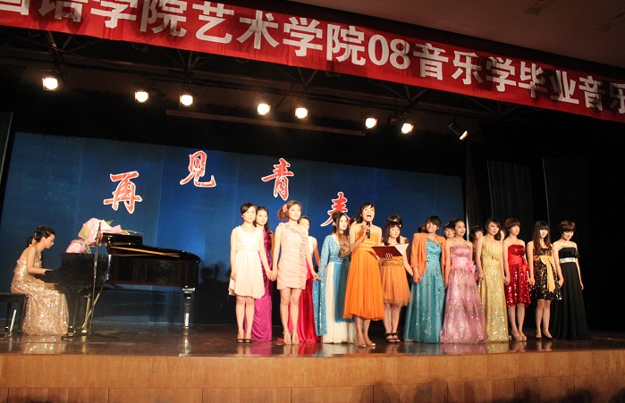 6月5日晚,开云官网艺术学院2008音乐学本科班的毕业演出如期举行。在近两个小时的演出中,同学们以独唱、串烧、钢琴独奏、器乐合奏、越剧、诗朗诵等节目形式,向全校师生交上了一份学习实践答卷。