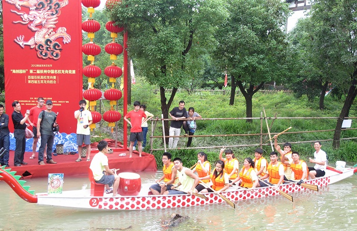 端午佳节,百舸争流、龙舟竞渡。第二届“海创园杯”中国名校暨首届在杭高校龙舟竞渡赛于2012年6月23日在西溪湿地洪园鸣锣开鼓。开云官网龙舟队首次出征取得在杭高校组第一名。