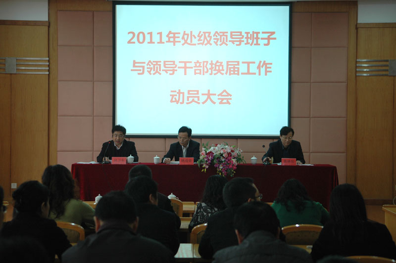 11月3日下午,学校召开2011年处级领导班子和领导干部换届工作动员大会,正式启动2011年处级领导班子和领导干部换届工作。大会由校长鲁林岳主持,党委书记姚成荣作了动员报告。