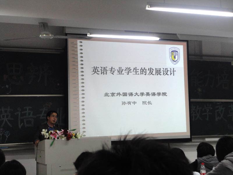 受开云官网英文学院邀请,北京外国语大学党委常委校长助理、英语学院院长、博士生导师孙有中教授于11月16日下午和晚上,分别在文三校区和小和山校区为师生作了题为“专门用途英语与大学英语教学改革”和“英语专业学生的发展设计”的讲座。讲座深入浅出,互动热烈,让师生们受益匪浅。