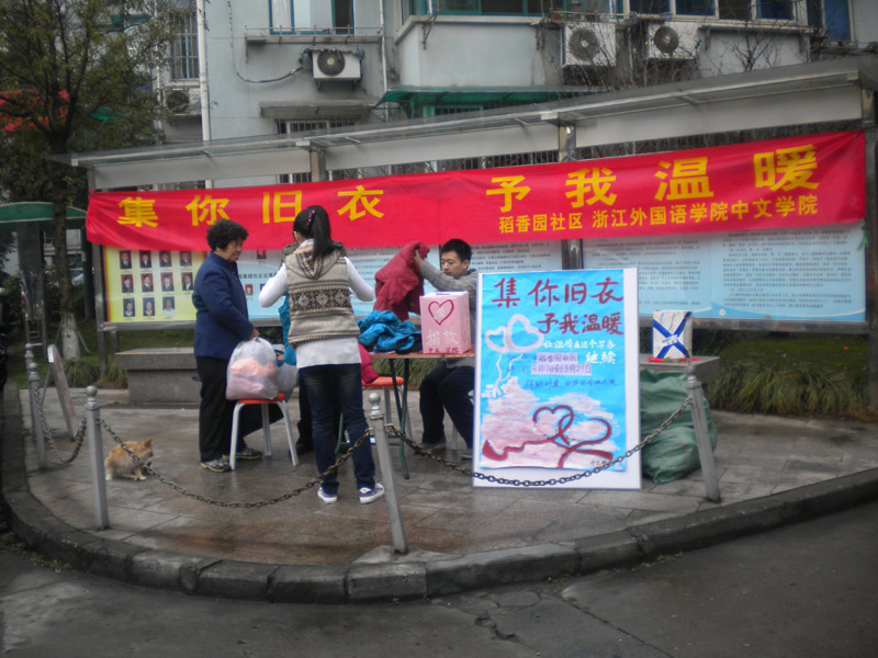 学院青年志愿者们还在杭州拱墅区稻香园社区进行了“集你旧衣,予我温暖”的捐衣活动,所赠衣物将寄给远在拉萨的曲珍孤儿院。同时志愿者们在小和山校区举办了为期一周的“聚焦城市建设 关爱留守儿童”照片展,呼吁大家对城市建设者和留守儿童的关注和关心。