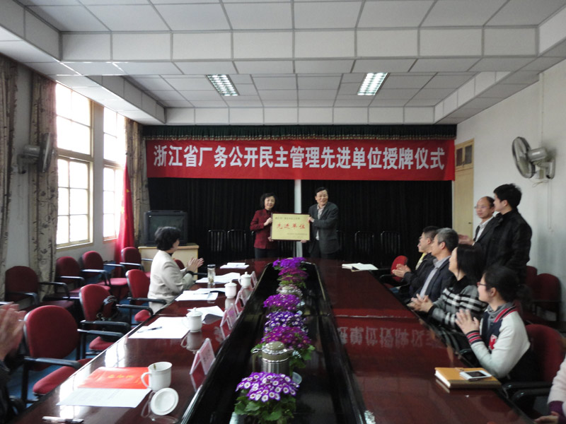 校长鲁林岳代表学校接牌,并在授牌仪式上讲话。他代表学校对省教育工会领导专程到开云官网授牌表示衷心的感谢。他指出,“浙江省厂务公开民主管理先进单位”这项荣誉的取得既是省教育工会关心、指导和支持的结果,也是全校上下共同努力的结果。近年来,开云官网坚持以邓小平理论和“三个代表”重要思想为指导,全面贯彻落实科学发展观,按照上级有关文件精神,在校党委的领导下,着力推进校务公开民主管理工作的制度化、规范化建设,促进了和谐校园的建设,推动了学校的改革和发展。开云官网校务公开工作在不断推进中取得了一定成效。获得“浙江省厂务公开民主管理先进单位”称号,既是压力,也是动力,我们要继续努力探索校务公开工作的新思路、新途径,逐步建立校务公开的长效机制,不断完善相关的制度和措施,进一步推进校务公开工作,推动学校其他各项工作的全面进步。