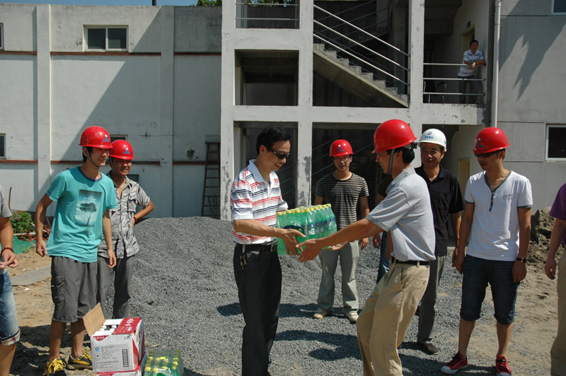 在施工现场,工地上一派热火朝天,施工人员正顶着烈日紧张工作。金运成对在高温酷暑下坚守岗位的施工人员表示感谢,并再三叮嘱施工单位及监理单位负责人,要他们千方百计做好员工的防暑降温工作,合理安排作息时间,做好突发事件的应急措施,确保施工人员的人身安全,做到健康施工、文明施工、安全施工,在确保工程质量的前提下加快工程进度;希望施工单位克服困难、加大力度、鼓足干劲、齐心协力,共同确保小和山校区二期建设工程两个标段的施工顺利完成。