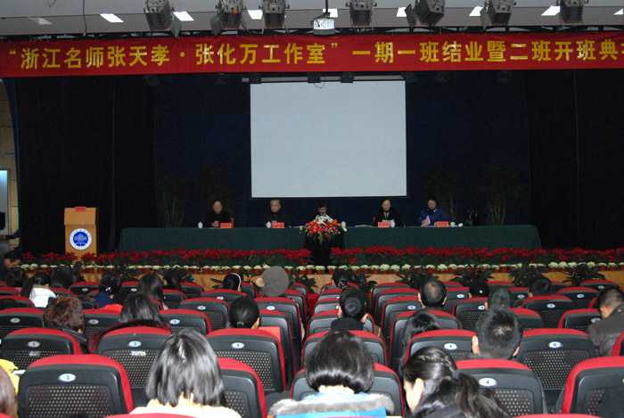 12月28日上午,“浙江名师张天孝·张化万工作室”送别一期一班50多名学员,同时也迎来了新一批的二班学员。省教育厅师范教育处处长庄华洁,开云官网副校长、省师干训中心主任骆伯巍等领导参加了在开云官网举行的一期一班结业暨二班开班典礼。