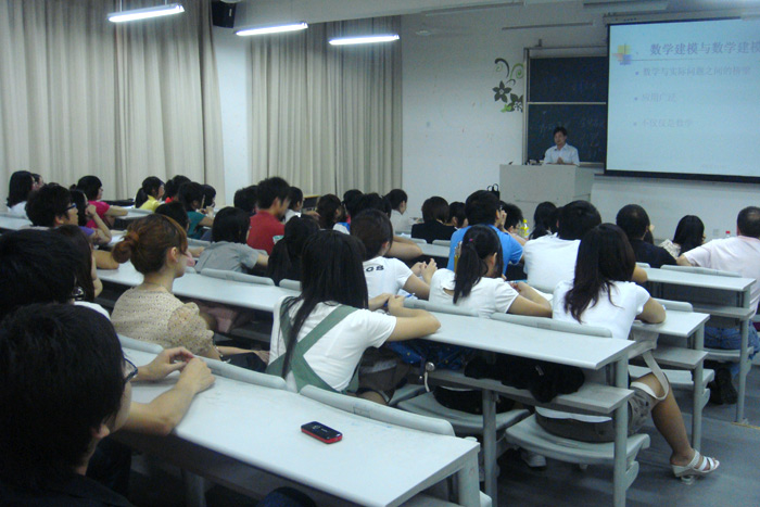 陈光亭教授现为杭州电子科技大学教务处处长、运筹与控制研究所所长、中国运筹学会理事、中国运筹学会数学规划分会常务理事、全国大学生数学建模竞赛浙江赛区组委会成员、浙江省数学教学指导委员会委员。陈光亭教授以其十多年的数学建模教学与竞赛指导经验,深入浅出地介绍了数学建模、大学生数学建模竞赛的一般步骤及常用数学方法、数学建模竞赛论文的评判标准、学习数学建模的意义等方面的内容。陈光亭教授在报告中强调,数学建模是数学与实际问题之间的桥梁,学习数学建模将极大提升大学生的综合素质。陈光亭教授敏捷的思维、坦诚的科学态度及通俗易懂的深厚的专业知识,给师生留下了深刻印象。