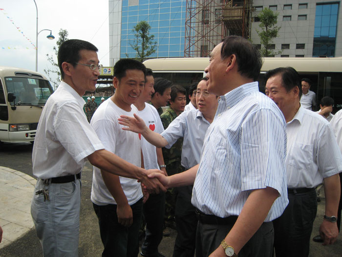 浙江省省长吕祖善、四川省省长蒋巨峰一行专程来到青川县教师进修学校,看望参加浙江省帮扶青川中小学教师全员培训的首期学员和培训专家。