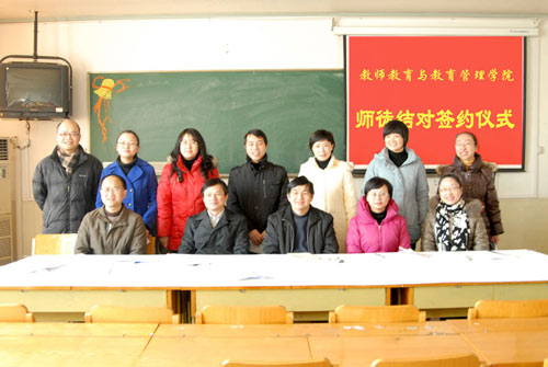 为了进一步完善学院教师梯队建设,发挥教授的传帮带优势,教师教育与教育管理学院采取师徒结对形式助推青年教师发展。在12月28日下午的结对仪式上,学院七位资深教授分别与七位年轻讲师结成对子,并签署了师徒结对协议书。吴卫东教授代表导师作了表态发言,她说,师徒结对一是要帮助徒弟明确定位,扬长避短;二是要对徒弟悉心指教,提供资源,并搭建发展平台;三是要与徒弟建立朋友般的关系,加强沟通联络,亦师亦友。年轻讲师代表陈近老师也发表了感言,她表示作为徒弟,一定要积极转变态度,追求职业理想,创造业绩,不辜负导师的期望。