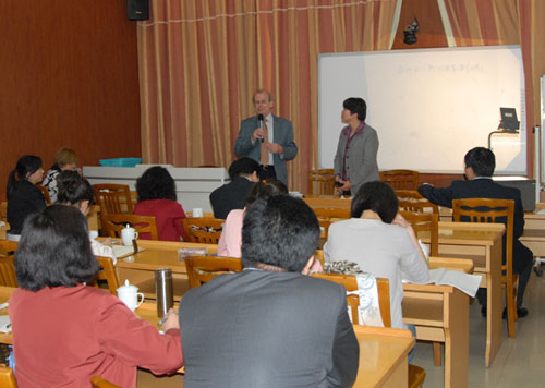 4月29日,德国莱比锡大学实践教育学研究与发展中心主任迪特尔·舒尔茨教授来校为教师教育与教育管理学院的全体教师作了题为“教师人格在教育与教学中的意义”的报告。舒尔茨教授依据多年的教育实践研究,对教师的角色意识、专业化要求作了生动而幽默的阐述。针对舒尔茨教授的报告内容,老师们提出了“德国教师的成熟度评价”“德国好的教学的评价标准”等问题,积极与舒尔茨教授进行互动交流。德国汉斯·赛德尔基金会项目主任凯夫勒也专程来杭参加了本次讲学活动。