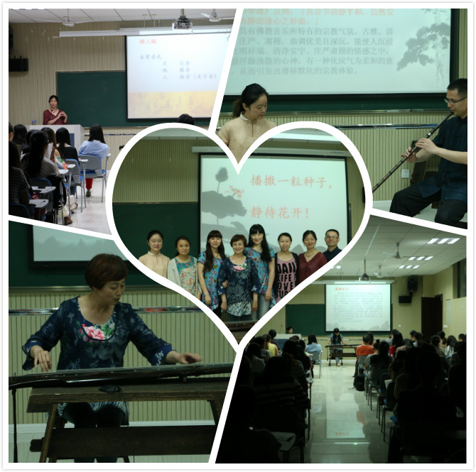 演奏会采取讲座和表演相结合的方式。序幕拉开,一袭红衣的典雅女子——张怡雯老师走上讲台,声情并茂地讲述了古琴演变历史。从刚出土的两层弯曲古琴到当下不断改造的古琴,诸多历史典故让现场观众的心灵经历了古琴文化的洗涤。当谈到演奏技巧摘、挑、勾等技巧时,舞台的另一边随即响起相应弹奏。《忆故人》的怀想,《普庵咒》的浩然,《胡笳十八拍》的惆怅……句句动人,曲曲如天籁,曲中极尽烟波浩淼之致。情至高潮,古琴独奏、琴歌、琴箫合奏、古琴二重奏久久回荡、余音绕梁。观众眼睛里充满细腻的布景,耳朵里传来如醉的琴音,脑海中不自觉地联想那些不曾到过,又似到过的场景……