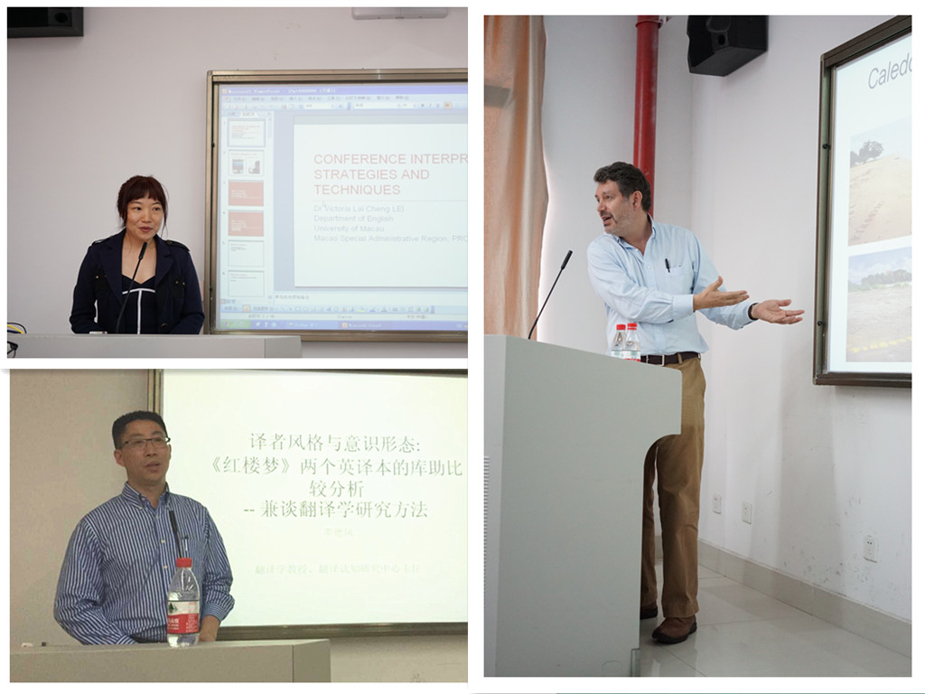 John Corbett主讲题目为《翻译与苏格兰文学》。他追溯了苏格兰语与英文交互的历史,并分析了苏格兰语在文学翻译中所凸现的文化身份。李德凤主讲题目为《译者风格与意识形态----< 红楼梦>两个英译本的库助比较分析》。他通过语料库分析描述了杨宪益与霍克斯所译《红楼梦》前十五回中细致的语言现象,比较了两位译者的语言特点及译者风格。李丽青主讲题目为《会议口译策略与技巧》。她结合澳门大学口笔译认知研究中心在研课题及自身多年担任澳门特别行政区首席译员的译事经历,深入浅出地为大家分析了在会议口译中遭遇的困难类型及解决方案。