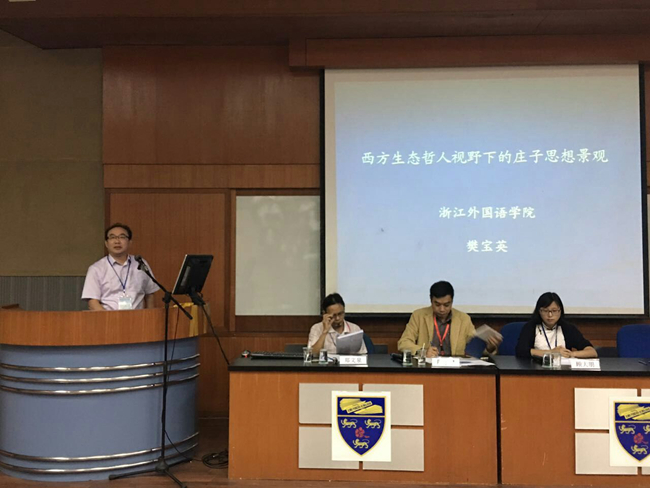 跨文化传播与接受是目前学术界最关心的课题之一。文化的影响既可以向后世延续,也可以向周边国家扩展。樊宝英教授在研讨会上应邀作了《西方生态哲人视野下的庄子思想景观》的主题演讲。他的发言以中国道家文化为中心,主要讨论了在全球化的视角下如何更好地传播中华文化。顾大朋博士在研讨会上作了关于书法的主题演讲,弘扬了中华民族优秀传统文化,促进国际间的学术对话与交流。