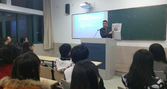 王国海的摄影作品多次获国家大奖,多幅作品入选“影像亚洲”国际摄影双年展。现场展示的案例照片画面精致、视角独到,让同学们赞不绝口。通过展示自己的摄影作品,王国海向大家讲授了摄影技术。他说,如何拍出一张好照片,技术是一方面,但最重要的还是选取的角度。