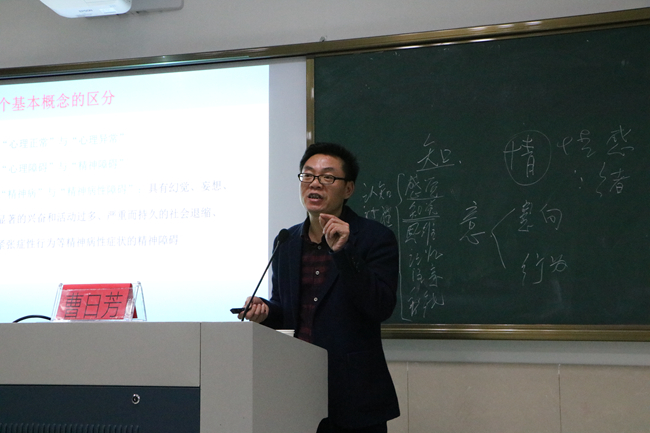 “你们是如何理解精神病的?”曹日芳以问题开始讲座,介绍了一些常见心理障碍的识别与评估方法。他指出,我们只要了解了精神病,就不必害怕它。