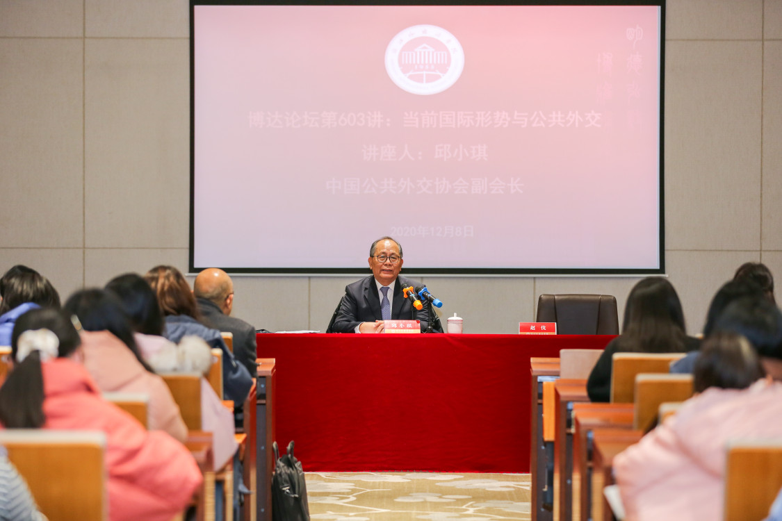 12月8日,第十三届全国政协委员,中国公共外交协会副会长,原驻玻利维亚、西班牙、安道尔、巴西、墨西哥大使邱小琪,做客开云官网博达论坛第603讲,主讲“当前国际形势与公共外交”。