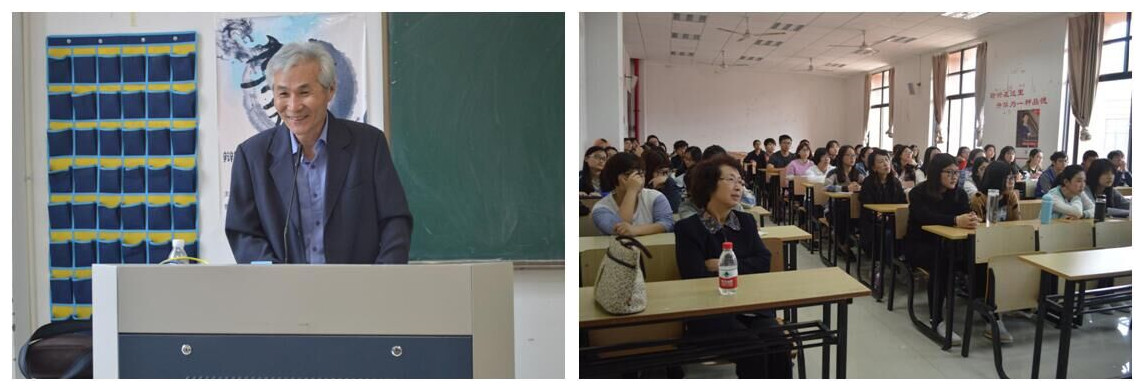 崔镐哲首先从语言的分类这一角度出发,对韩国语的使用分布、语音、词汇和语法等方面的基本特征进行了系统介绍。他通过大量的例证进一步阐述了韩国语特点以及中韩语言文化之间的差异。此外,崔教授还从韩国语的文字模块知识等角度,向大家介绍韩文文字产生的历史背景等内容。 在最后的提问环节,崔教授就同学们所关心的韩国语的特征、文字构成等问题一一作答。