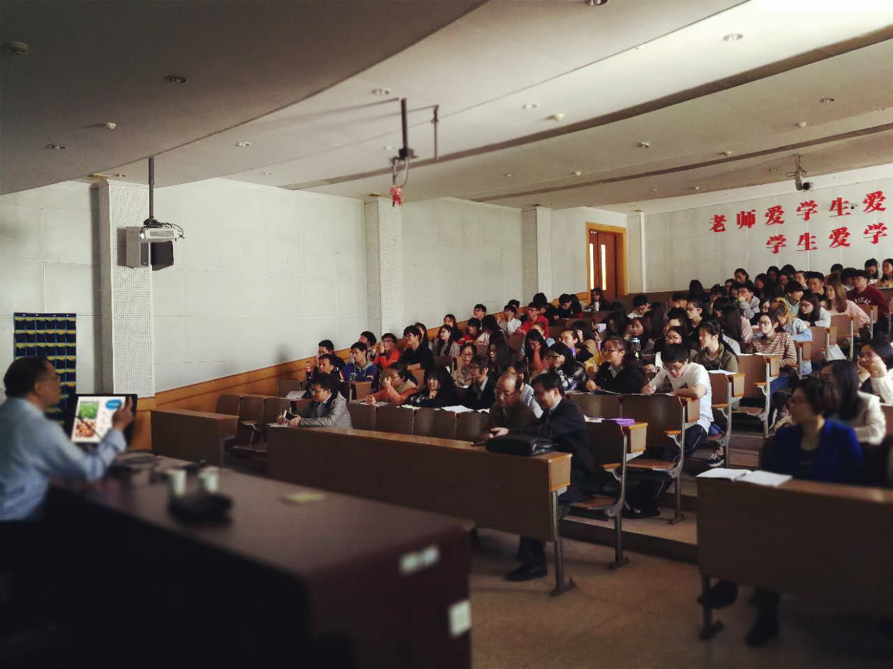 汤谷平用生动的实例结合幽默的语言,向大家介绍“化学是一门什么样的学科”,并积极引导学生要热爱所学的化学专业。他指出,日常中随处可见化学现象与化学问题,比如薄荷糖的感觉、芥末的滋味、芋艿中的生物碱、钱塘江水中的异味和宇航员生病怎么吃药等。同时,汤谷平介绍了他带领的课题组在生物材料和药物控制释放等研究中所取得的成果,并通过阐述如何发现科学问题,如何从交叉学科中摩擦出科学的火花,以此来鼓励同学们积极参与科研,艺术化地呈现科研成果。