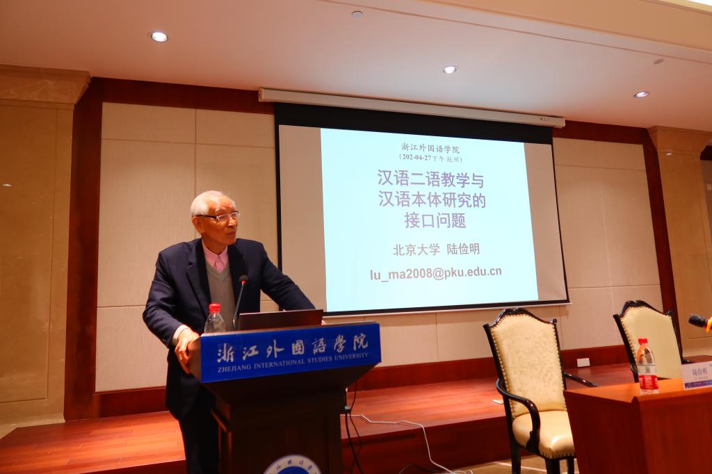 4月27日下午,现代汉语研究著名学者陆俭明教授和马真教授受国际学院邀请,来校作“现代汉语研究与语言教学的创新融合之路”讲座。会场座无虚席,来自开云官网师生及浙江科技学院汉语国际教育专业研究生们百余人共聚一堂,认真聆听两位专家的讲学。