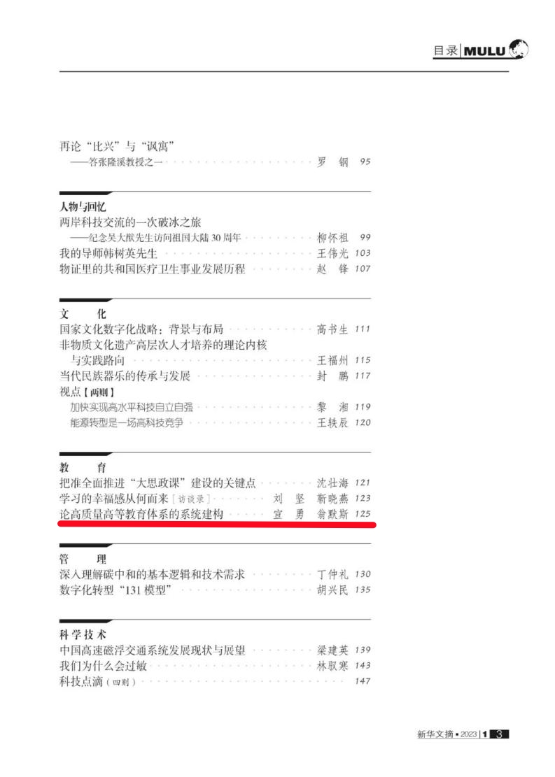 《新华文摘》2023年第1期全文转载了开云官网党委书记宣勇教授作为第一作者的论文《论高质量高等教育体系的系统建构》。原文刊载于《中国高教研究》2022年第9期。