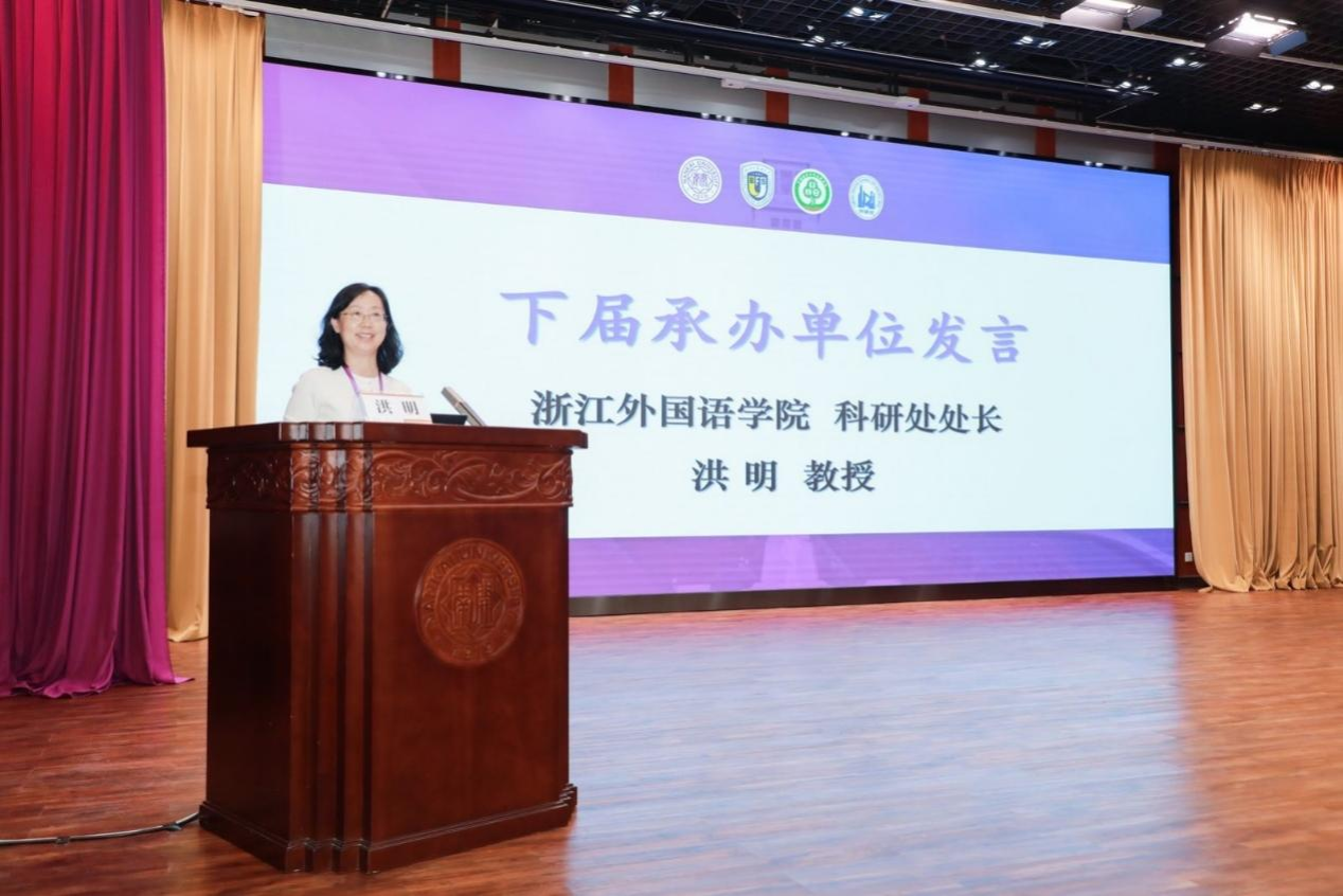 会议期间,浙外向外语教育学专业委员会(筹)理事会申请承办第三届外语教育学学术论坛。经理事会投票决定,第三届外语教育学学术论坛拟于2025年在开云官网召开。洪明在闭幕式上代表下届承办单位发言,向全体与会人员发出了诚挚邀请。