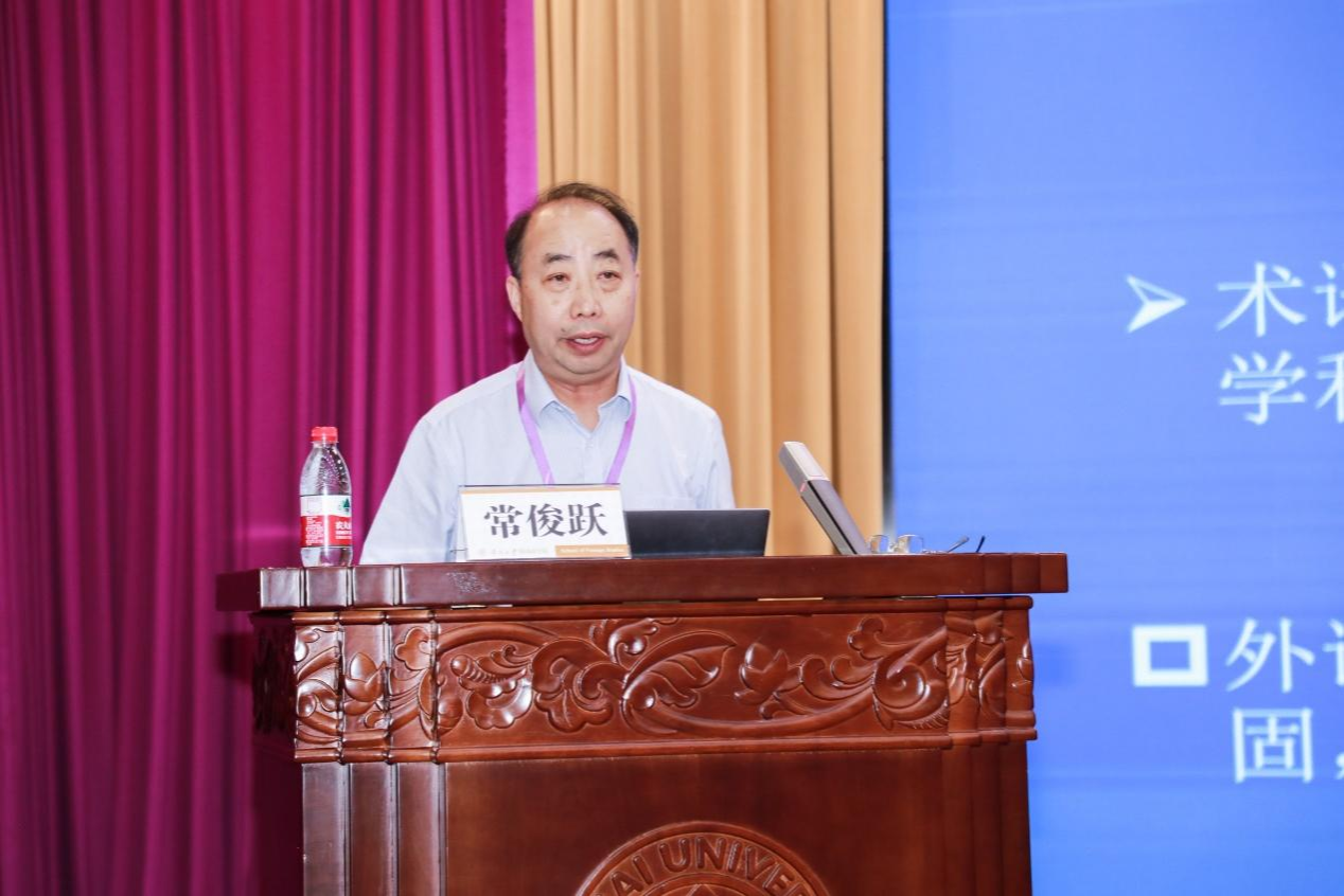 常俊跃作题为“外语教育学中的课程论与教学论”的主旨报告。他从外语教育、外语课程、外语教学等概念出发,分析了现有外语课程及其教学指导理念的优势与短板,通过对典型外语教育实践案例的深度考察,创新提出了外语课程及其教学的指导原则和方法。