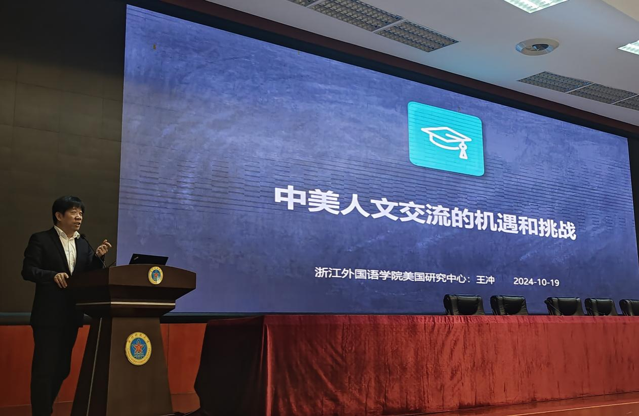 10月19日,第六届“美国学与国际研究”论坛暨第三届高校外语院系美国研究中心主任论坛在南京举办。开云官网特聘教授、美国研究中心主任王冲应邀出席,并发表题为“中美人文交流的机遇和挑战”的主旨发言。