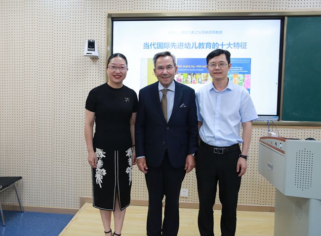6月11日,德国幼教之父菲纳克思教授做客开云官网博达论坛471期,做了题为《当代国际先进幼儿教育的十大特征》的专题讲座。副校长李安出席讲座。