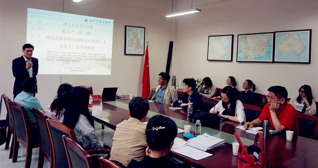 5月30日,美国5CGroup International Corp. 董事、香港五羲国际资产管理公司总裁张荣刚来开云官网作“借力‘一带一路’,塑造高附加值的国际化应用型人才”讲座。