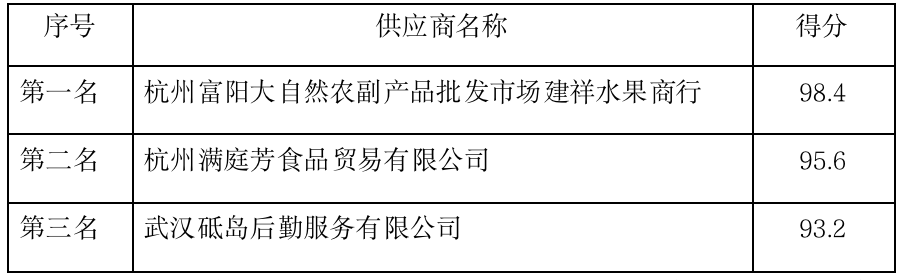 根据相关规定,我们确定杭州富阳大自然农副产品批发市场建祥水果商行为中标单位,如果该供应商不能履约,采购人有权按入围顺序确定其他供应商。