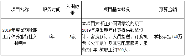 一、招标项目名称:2019年度暑期教职工疗休养旅行社入围项目