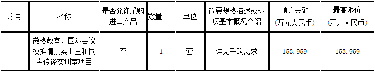 一、招标项目名称:微格教室、国际会议模拟情景实训室和同声传译实训室项目
